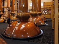 第四步是蒸餾,酒蒸汽通過管道進入冷卻器產生液體,然后根據不同的時間分成不同的度數調和在一起便是可以喝的酒。