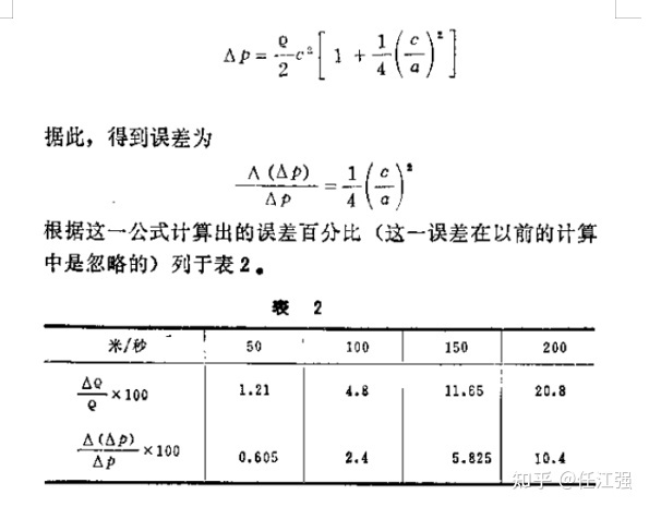 這一關系式即解答了上述的問題,因為它表明密度的變化與力的變化成正比。這樣,因為葉片上的壓力是變化的,所以在計算中應該會有相應的誤差。如果按公式△P≈(ρ/2)c2來計算動壓,則會發生在計量的誤差。其精確的數值應為: