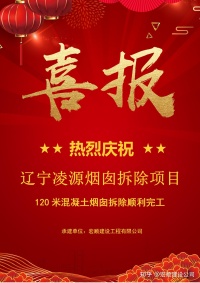 祝賀遼寧凌源120米混凝土煙囪人工拆除工程順利完工