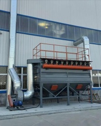 n該類除塵器一般采用離線清灰方式,清灰過程是先切斷該室的凈氣出口風道,使該室的布袋處于無氣流通過的狀態(分室停風清灰)。然后開啟脈沖閥用壓縮空氣進行脈沖噴吹清灰,切斷閥關閉時間足以保證在噴吹后從濾袋上剝離的粉塵沉降至灰斗,避免了粉塵在脫離濾袋表面后又隨氣流附集到相鄰濾袋表面的現象,使濾袋清灰徹底,并由可編程序控制儀對排氣閥、脈沖閥及卸灰閥等進行全自動控制。