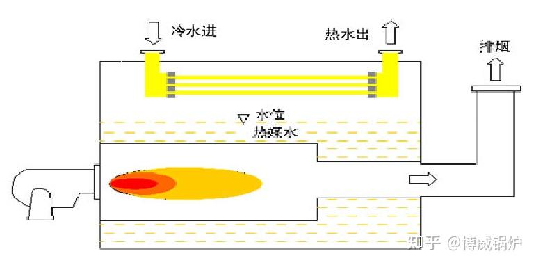 2、承壓鋼制鍋爐:顧名思義可以承壓,和常壓鍋爐主要區別在于鍋爐本體直接承受系統壓力,危險性較大。雖然承壓鍋爐既可以出高溫水,也可以出低溫水,但是當需要產生低溫水時,熱媒水溫度較低,遇到高溫爐膛,極易產生受熱面低溫冷凝腐蝕。且熱媒水與外界系統也是直接連通,故鍋爐的氧腐蝕、結垢問題依然存在,且伴隨鍋爐不斷地結垢,鍋爐熱效率也逐年下降,一般承壓鍋爐熱效率在85%左右。