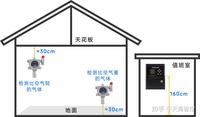 2.檢測(cè)可燃?xì)怏w比重小于空氣時(shí),可燃?xì)怏w檢測(cè)儀安裝位置應(yīng)該在疑似泄漏點(diǎn)上方,距離天花板不大于30-60cm,檢測(cè)可燃?xì)怏w比重大于空氣時(shí),可燃?xì)怏w檢測(cè)儀安裝位置應(yīng)該在疑似泄漏點(diǎn)下方30-60cm,距離地面不大于30cm;