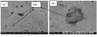 圖中9試樣H0的氣孔較多,爐渣通過這些氣孔不斷向澆注料的內部滲透,從鋼渣成分的化學分析看出,鋼渣中存在大量的CaO、Fe2O3等低熔物,這些低熔物進入試樣后形成鋁酸四鈣及鋁酸鈣等低熔點相,對試樣進行不斷的侵蝕。圖10中試樣H2中加入了活性氧化鋁粉和試樣中剩余的硅微粉容易形成莫來石相,隨著莫來石相的形成體積會伴隨一定的體積膨脹,使澆注料的結構更加致密,體積密度增大、氣孔率降低,能夠有效阻止鋼渣的侵蝕,能夠提高材料的抗渣性能;而過多的活性氧化鋁粉的加入,除了形成莫來石,也會和鋁酸鈣水泥形成CA6,CA6的形成也有一定的體積膨脹,而體積膨脹過大,將導致澆注料中的缺陷增多,抗渣性能下降。