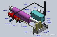 無氧熱解系統(tǒng)主要由進料裝置、雙層套筒熱解裝置、燃氣凈化裝置出炭裝置、沉降箱、控制柜等組成。