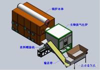 生物質氣化爐采用旋轉沸騰爐排高溫熱解氣化爐,生物質燃料通過自動喂料機從氣化爐側面加入爐內,爐排旋轉均勻布料,燃料層承托在爐排上,選用空氣為氣化劑,由一次風機從爐排下部鼓入,熱解氣化燃氣通過燒嘴排出進入鍋爐爐膛。
